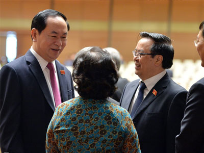 Đại biểu Quốc hội khóa mới tươi cười trong buổi họp đầu tiên