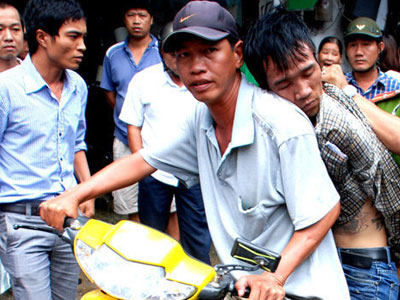 Hàng chục người dân bắt tên cướp xăm trổ
