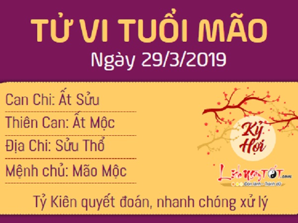 Tuổi Mão hôm nay có thể bỏ quên một số thứ quan trọng ví dụ như là những lời hẹn trước, những đồ vật...Đây là ngày phù hợp để hoàn thành những công việc còn dang dở khiến bạn mất nhiều tâm sức từ trước đó, trước khi bắt tay vào các dự án mới.