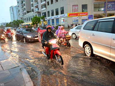 Chiều 24/6, do ảnh hưởng của bão, Hà Nội có mưa và gió lớn khiến nhiều tuyến đường rơi vào cảnh ùn tắc, nước ngập.