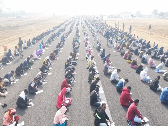 Sự bùng nổ về số lượng thí sinh tham gia đợt tuyển dụng lực lượng an ninh tại bang Odisha đã tạo nên một khung cảnh hiếm thấy: hàng nghìn người ngồi tràn khắp đường băng sân bay để làm bài thi dưới sự giám sát nghiêm ngặt của thiết bị bay không người lái (UAV).
