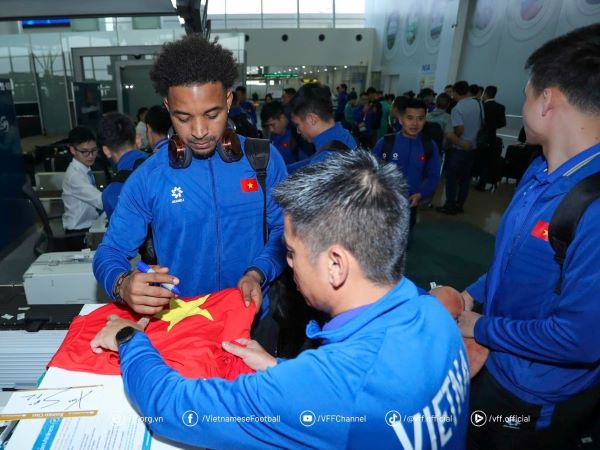ĐT Việt Nam đến Singapore chiều 23/12 và được chào đón nồng nhiệt ngay tại sân bay Changi.