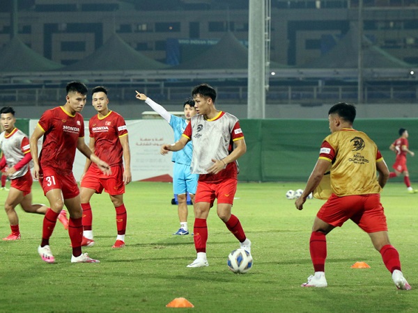 Trang 1ĐT Việt Nam đẩy cao khối lượng vận động, rèn kỹ chiến thuật trong buổi tập thứ hai tại UAE