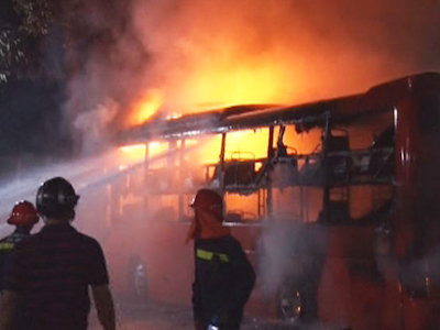 Ôtô giường nằm chở hàng chục hành khách cháy ngùn ngụt