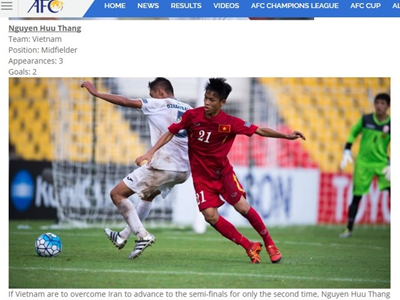 Trong 3 trận đấu ở vòng bảng, tiền vệ Hữu Thắng ghi được 2 bàn và vinh dự được trang chủ Liên đoàn bóng đá châu Á (AFC) bình chọn vào top 8 gương mặt đáng xem ở loạt trận tứ kết.
