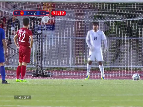 Ở trận đấu giữa U22 Việt Nam và U22 Thái Lan vừa diễn ra, trọng tài chính đã cho U22 Việt Nam thực hiện lại cú sút phạt đền sau khi Tấn Sinh sút hỏng. Lí do tại sao?