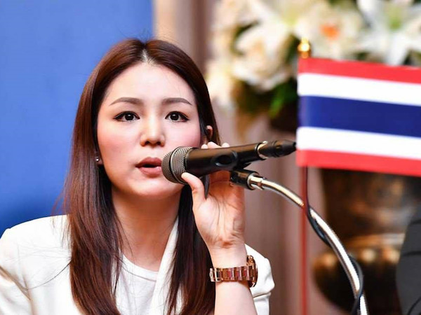 Nữ trưởng đoàn U22 Thái Lan Watanya Wongopasi thay mặt Liên đoàn bóng đá nước này (FAT) treo thưởng cho HLV Worrawoot cùng các học trò trước trận tranh vé vào bán kết SEA Games 29.
