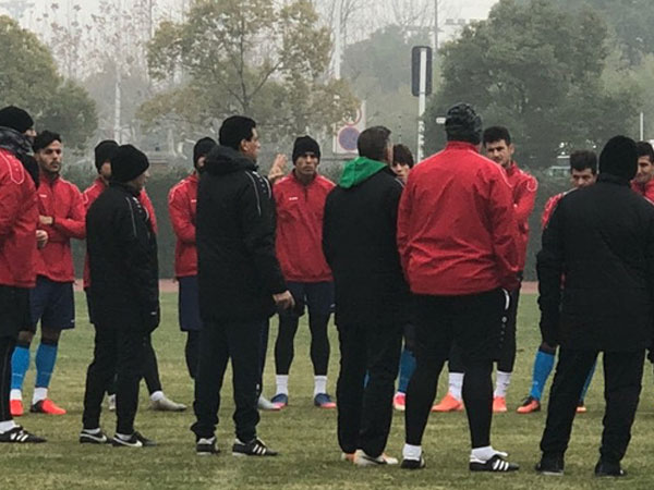 Trước buổi tập kín, HLV Abdul Ghani vẫn đồng ý cho các phóng viên Việt Nam vào ghi hình 15 phút khởi động của U23 Iraq.