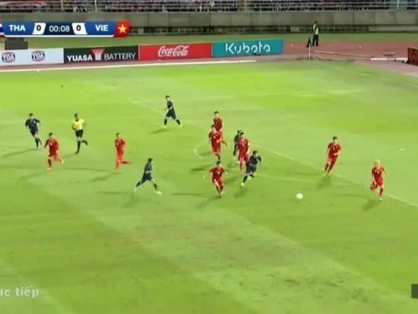 Tận dụng tốc độ để vượt qua Hemviboon, Văn Toàn tung cú sút quyết đoán. Tuy nhiên, bóng đi chệch khung thành đội chủ nhà trong gang tấc khiến người hâm mộ không khỏi tiếc nuối.