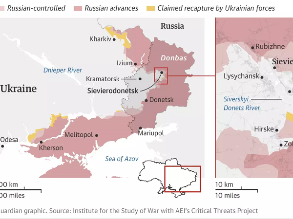 Người đứng đầu chính quyền quân sự vùng Luhansk Serhiy Hayday cho biết, quân đội Nga tiếp tục tấn công Severodonetsk và thành phố phía đông này đang bị chia đôi, Ukraine và Nga mỗi bên kiểm soát một nửa.