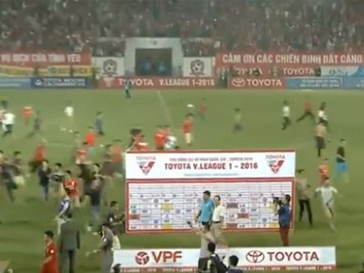 Sau khi trận đấu giữa Hải Phòng vs Sông Lam Nghệ An kết thúc, các cổ động viên đội bóng đất cảng tràn xuống sân và đồng loạt hô vang Hải Phòng vô địch.
