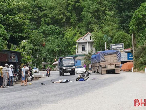 Sau va chạm với xe đầu kéo, hai người đàn ông trung niên ở Hà Tĩnh ngã xuống đường tử vong.