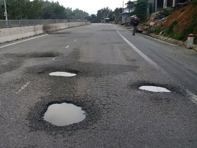 Dù chỉ mới hoàn thành việc nâng cấp mở rộng, đoạn QL 1A đoạn qua Đức Phổ (Quảng Ngãi) đã chi chít ổ gà.