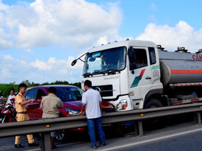 Xe tải tông xe bồn, vợ tài xế xe tải chết thảm trong cabin