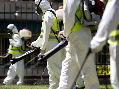 Theo các quan chức y tế Mỹ, nhiều bang và thành phố cần áp dụng chiến lược "tiếp cận 4 chiều" nhằm ngăn chặn sự lây lan của vật trung gian mang virus Zika. Nhân viên y tế phun thuốc diệt côn trùng. Ảnh minh họa: AP
