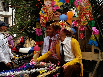 Để có một lễ ăn hỏi ấn tượng, chú rể đã quyết định trang trí những chiếc xe công nông để mang lễ vật sang nhà gái.