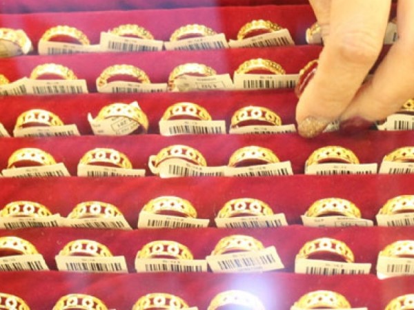 Giá vàng hôm nay đối với vàng trang sức 24K tăng cao so với cuối tuần trước nhưng vẫn thấp hơn giá vàng SJC khoảng 8,5 triệu đồng/lượng.