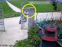 Không giảm tốc độ khi vào cua, lại đúng lúc gặp người đi ngược chiều, thanh niên điều khiển xe máy bất đắc dĩ phải đánh lái sang lề đường rồi phi thẳng xe vào nhà dân bên cạnh.