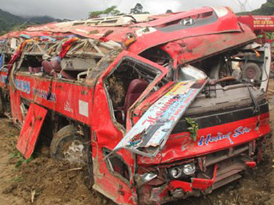 Hiện trường xe giường nằm lao xuống vực ở đèo Lò Xo