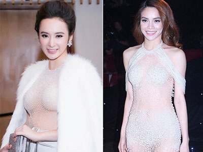Chiếc áo xuyên thấu đính ngọc trai cực táo bạo mà Angela Phương Trinh vừa diện tại sự kiện gần đây khiến nhiều người hoài nghi rằng, chẳng nhẽ cô đang muốn học hỏi từ "tai nạn" của đàn chị?