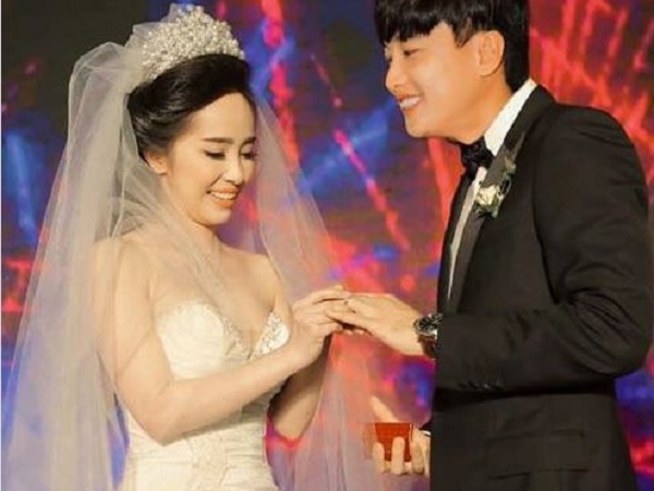 Trên mạng xã hội, nhiều khán giả đang bàn tán xôn xao về bức ảnh Nhã mặc váy cưới và trao nhẫn cho Vũ.