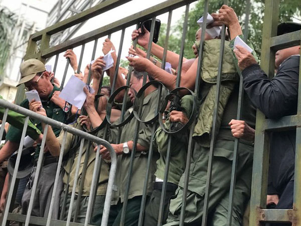 Rất đông thương binh đã xếp hàng cả chục tiếng đồng hồ trước cổng VFF để nộp hồ sơ mua vé trận Việt Nam và Thái Lan. Thậm chí, có người bất chấp trèo rào để được vào nơi đăng ký sớm.