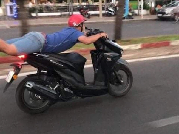 Trang 1'Vừa nằm vừa chạy xe', nam thanh niên ở Vũng Tàu bị phạt 7 triệu đồng