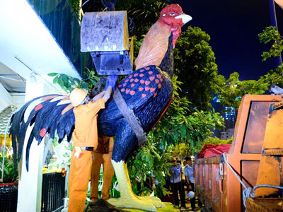Cẩu xe sang, linh vật gà khổng lồ ở Sài Gòn về đồn