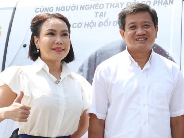 Việt Hương và ông xã - nhạc sĩ Hoài Phương tặng 1,7 tỷ đồng cho ông Đoàn Ngọc Hải mua xe cứu thương nhằm giúp ông thuận lợi hơn cho công tác thiện nguyện vì cộng đồng.