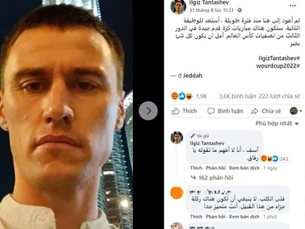 Trọng tài chính trong trận đấu giữa đội tuyển Việt Nam và tuyển Saudia Arabia - ông Tantashev Ilgiz đã khóa tài khoản Facebook trước trận đấu. Cơn "thịnh nộ" của cộng đồng mạng Việt Nam chủ yếu nằm ở tài khoản "fake" không chính chủ.
