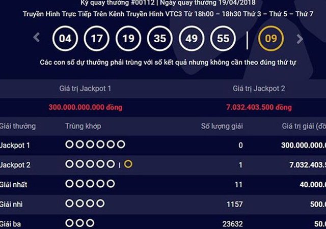 Giải Jackpot 2 trị giá 67 tỷ có người trúng, giải 300 tỷ vẫn vô chủ