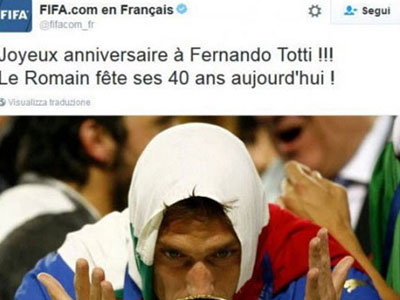 Bộ phận truyền thông của FIFA vừa mắc một sai lầm hài hước khi viết lời chúc mừng sinh nhật Totti trên Twitter.