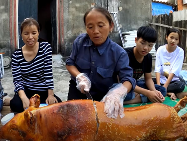 Trong lúc con trai bị xóa kênh, bà Tân Vlog bất ngờ trở lại, làm hẳn lợn quay siêu to khổng lồ để ăn mừng kênh đạt 4 triệu subs