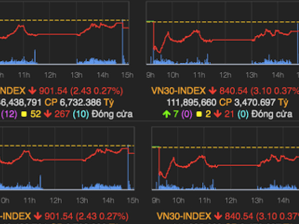 Thị trường chứng khoán rơi vào trạng thái bán mạnh, VN-Index có lúc mất hơn 27 điểm khi mở cửa phiên chiều.