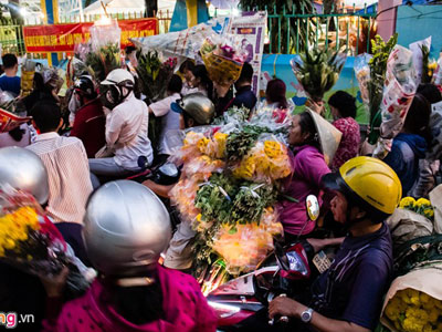 Chiều 29 Tết, hàng nghìn người dân TP HCM cùng đổ xô đến chợ hoa Hồ Thị Kỷ (quận 10) để mua hoa về chưng Tết, khiến giao thông xung quanh khu vực này hỗn loạn.