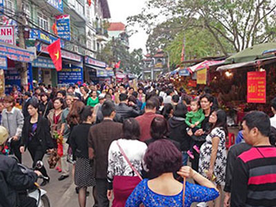 Cảnh tượng thường thấy tại Phủ Tây Hồ (Hà Nội) trong những ngày Tết, hàng nghìn người chen nhau từ ngoài cổng vào trong cầu tài lộc đầu năm.