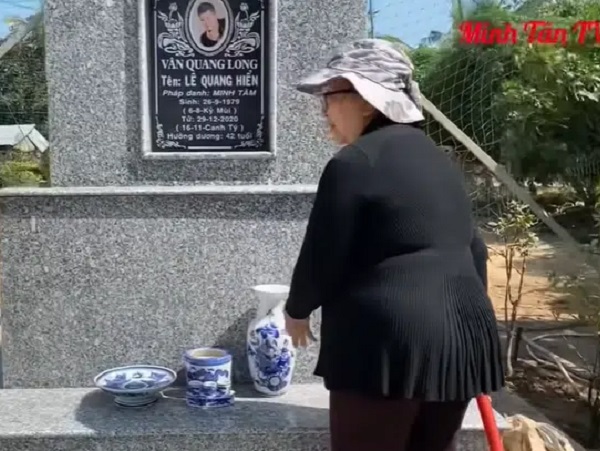 Những hình ảnh của bố mẹ ca sĩ Vân Quang Long tại nơi an nghỉ của con trai khiến người xem không khỏi xúc động.