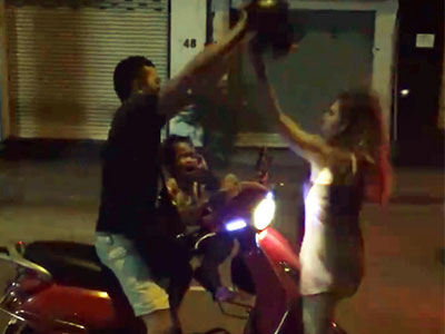 Cả gia đình chở nhau trên xe máy có xảy ra mâu thuẫn khiến người phụ nữ nổi máu “điên” đã dùng mũ bảo hiểm rồi sau đó cả túi xách, giày dép “phang” liên tiếp vào đầu chồng, mặc con nhỏ ngồi phía trước tay lái gào khóc. Sự việc xảy ra đúng ngày Gia đình Việt Nam.
