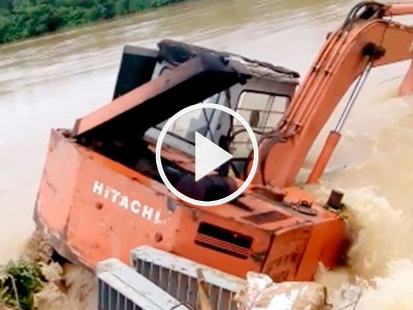 Video: "Ném" cả chiếc máy xúc xuống chặn dòng lũ cứu đê