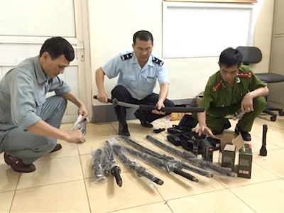 Hàng chục khẩu súng bắn điện, kiếm, bình xịt hơi cay, gậy 3 khúc từ biên giới Trung Quốc vào nội địa Việt Nam.