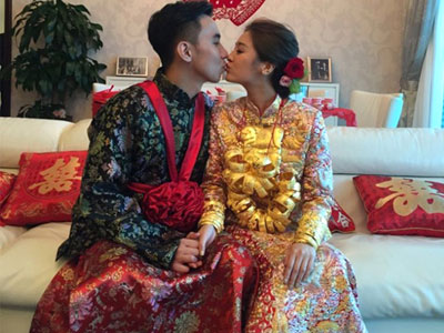 Hoa hậu Hong Kong đeo vàng trĩu cổ trong ngày cưới