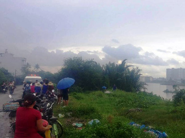 Người dân đội mưa xem vớt thi thể nam giới trên sông
