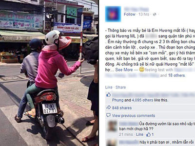 Một bức ảnh chụp lại cảnh người phụ nữ có dáng người gầy gò, đội mũ rộng vành kín đầu ngồi sau xe máy trên đường Vườn Lài, Q.Tân Phú được cho là Hương "mắt lồi" tái xuất khiến chủ xe và nhân vật chính trong ảnh bức xúc.