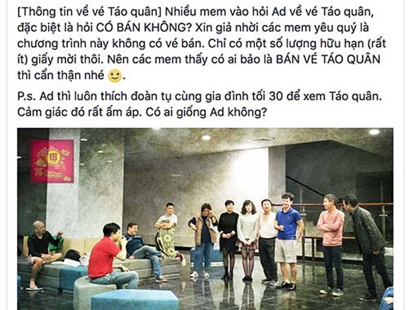 VTV nói gì về việc bán vé 3 đêm tổng duyệt Táo quân 2018?