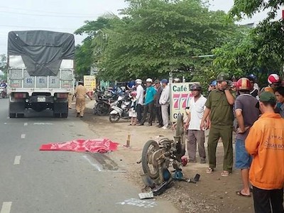 Mẹ chết, con 7 tuổi thương nặng vì bị xe tải tông