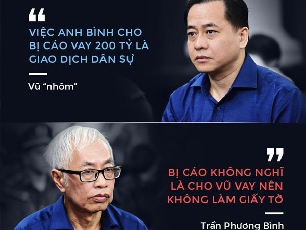 Bị cáo Vinh khẳng định lại là chứng từ hoàn toàn trống, chỉ có phần như biểu mẫu của ngân hàng. Sau đó Vinh hướng dẫn Vũ viết, ký tại phòng làm việc của Trần Phương Bình.