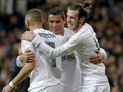 Bộ ba Cristiano Ronaldo, Karim Benzema, Gareth Bale cùng nhau lập công, qua đó giúp Real Madrid đánh bại Sevilla 4-0 để vượt mặt Atletico Madrid và leo lên vị trí thứ 2 trên BXH.