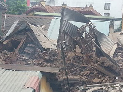 Khối bê tông mái tầng một của ngôi nhà ven suối Yến (chùa Hương, Hà Nội) bất ngờ đổ sập, khiến một người tử vong, 5 người khác bị thương.
