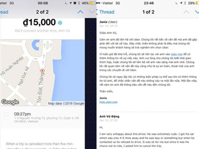 Tài xế Uber nhận chuyến nhưng rồi từ chối chở khách vì cho rằng khoảng cách khá xa nên Dino Vũ nhờ tài xế hủy chuyến giúp. Tuy nhiên người tài xế này không chịu nên anh chủ động hủy và khá sốc khi nhận được tin nhắn kỳ thị vùng miền, sỉ nhục khách là đồ ngu từ tài xế.