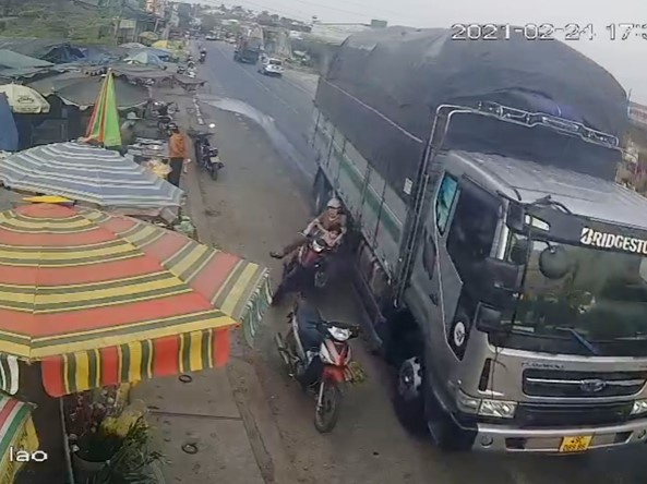 Cú tông quá mạnh khiến 2 người ngã văng xuống đường. Cùng lúc này một chiếc xe ben chạy tới, người đàn ông đã bị cán, rồi bị kéo lê khoảng 5m, tử vong tại chỗ. Người còn lại cũng bị thương khá nặng.